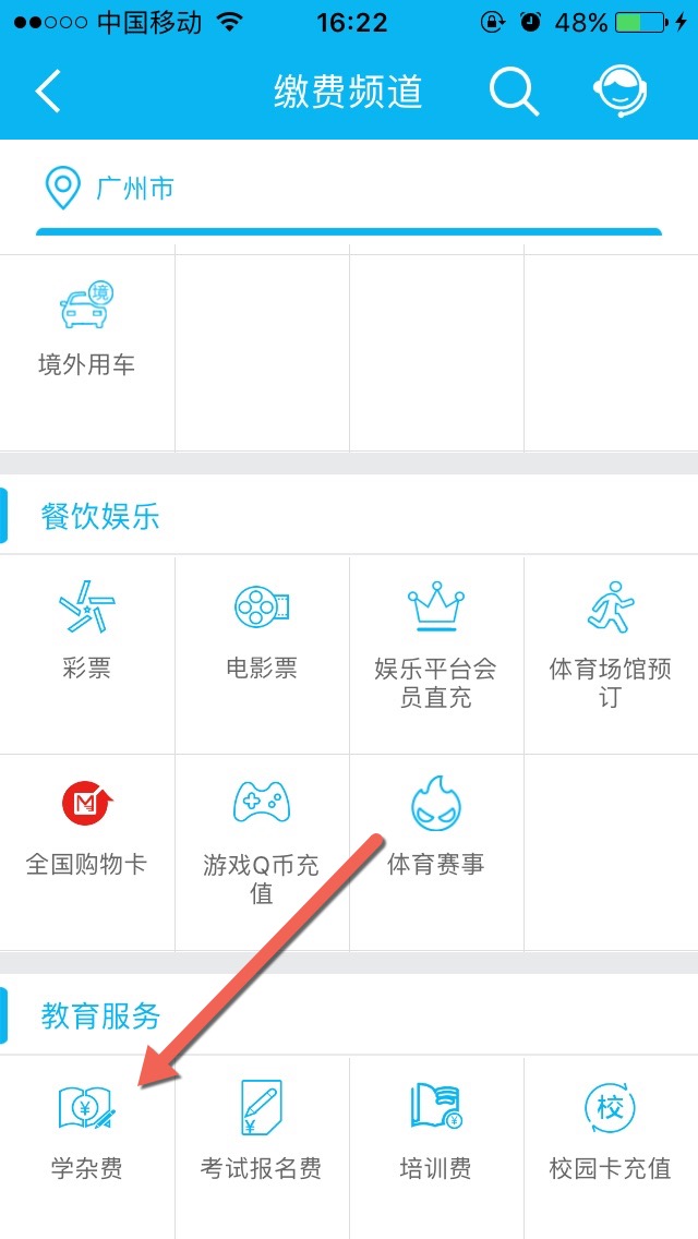 3、在当前列表页面往下翻页,找到并点击「学杂费」按钮