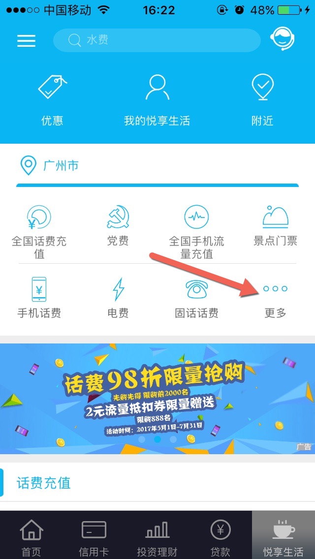 2、在「悦享生活」栏目页面,点击「更多」按钮