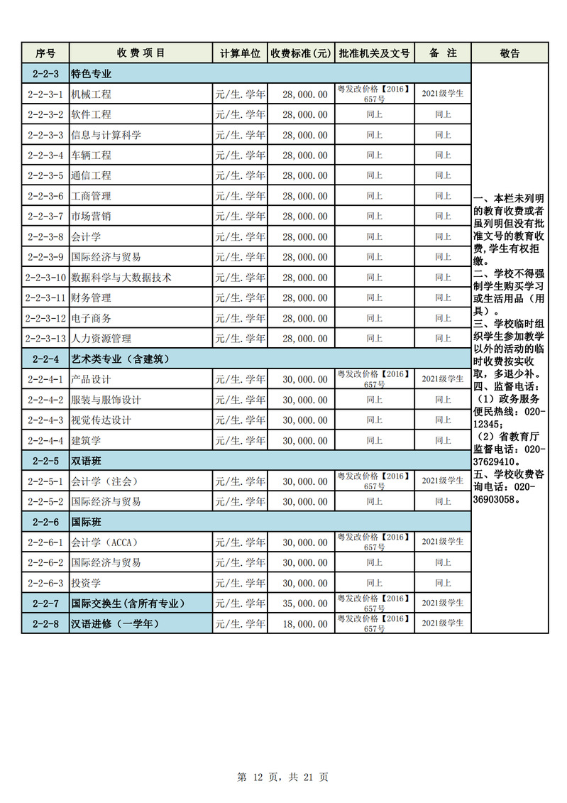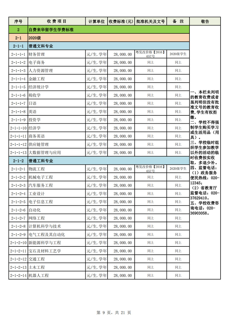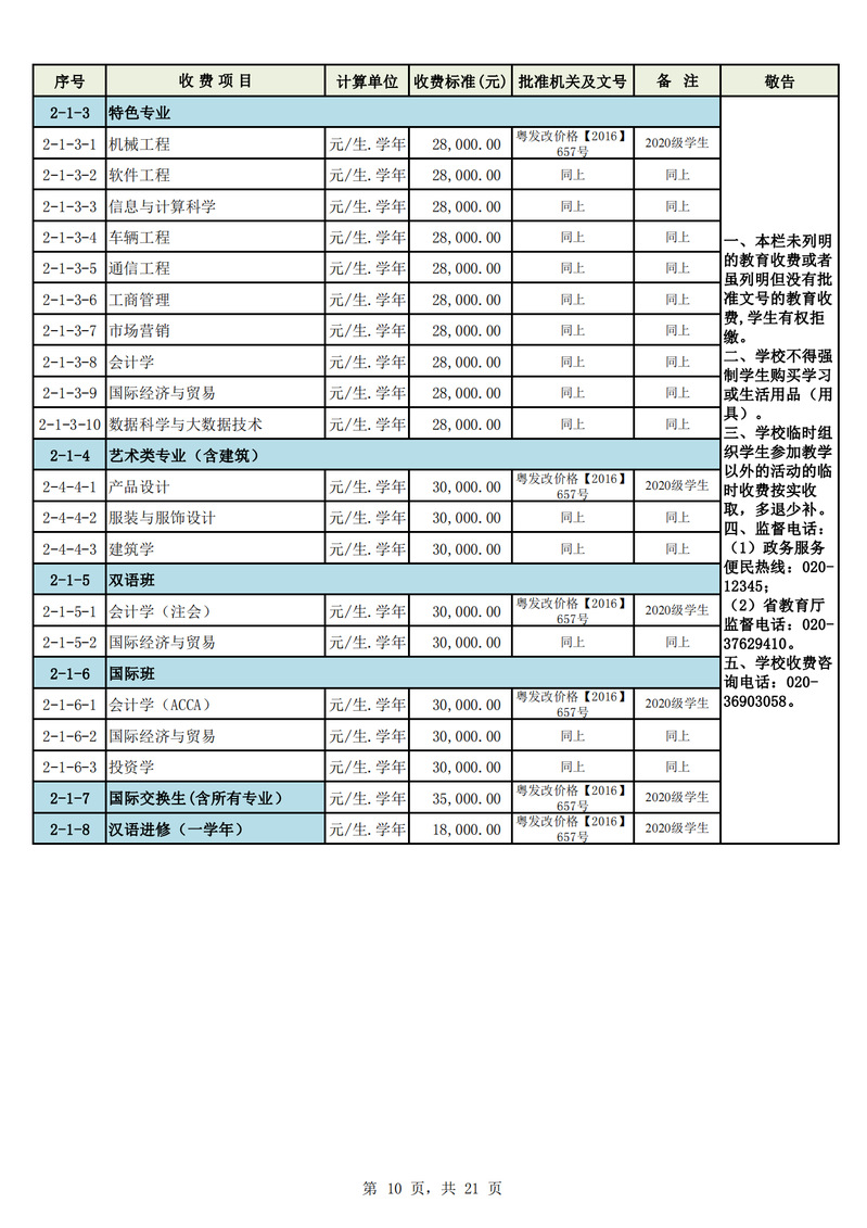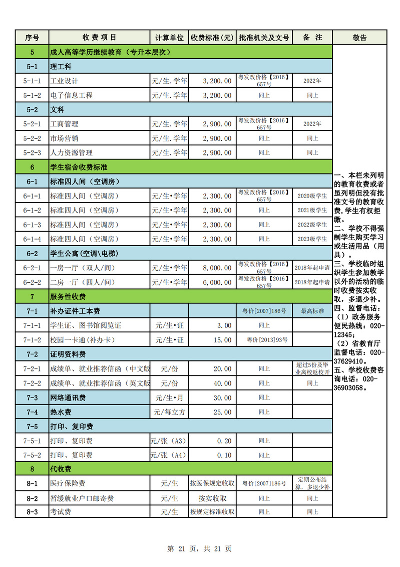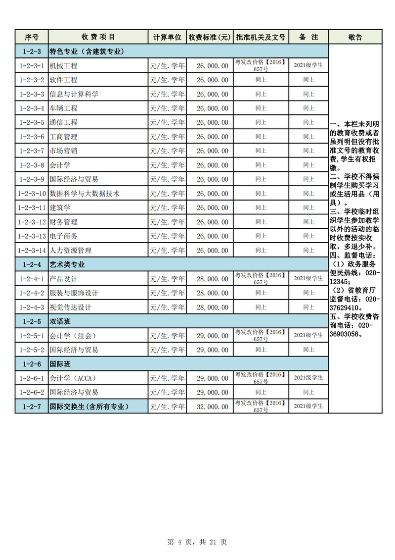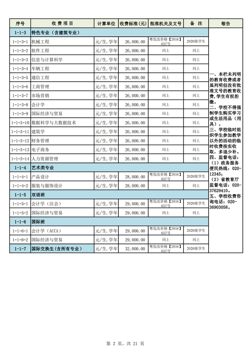 2023学年度广州城市理工学院教育收费公示栏