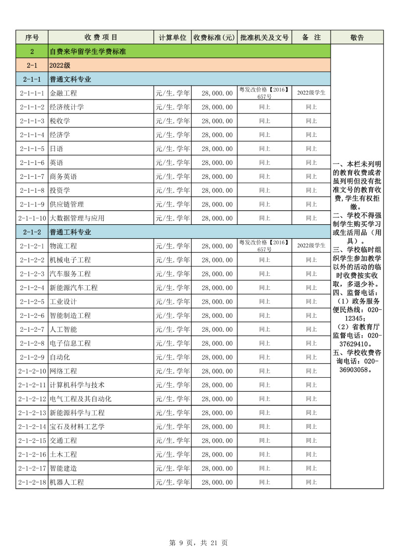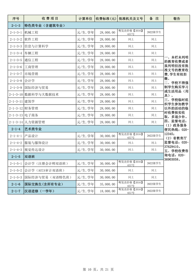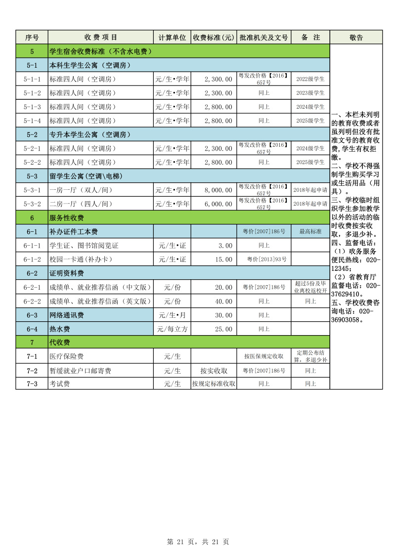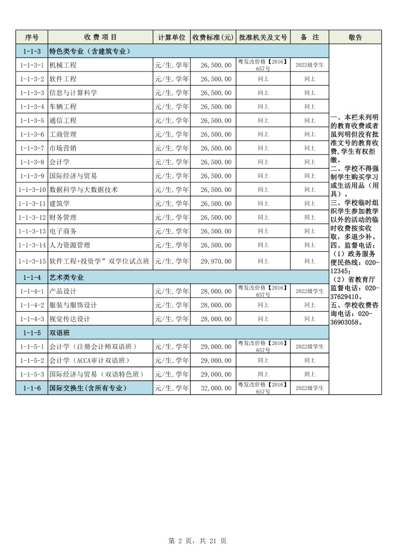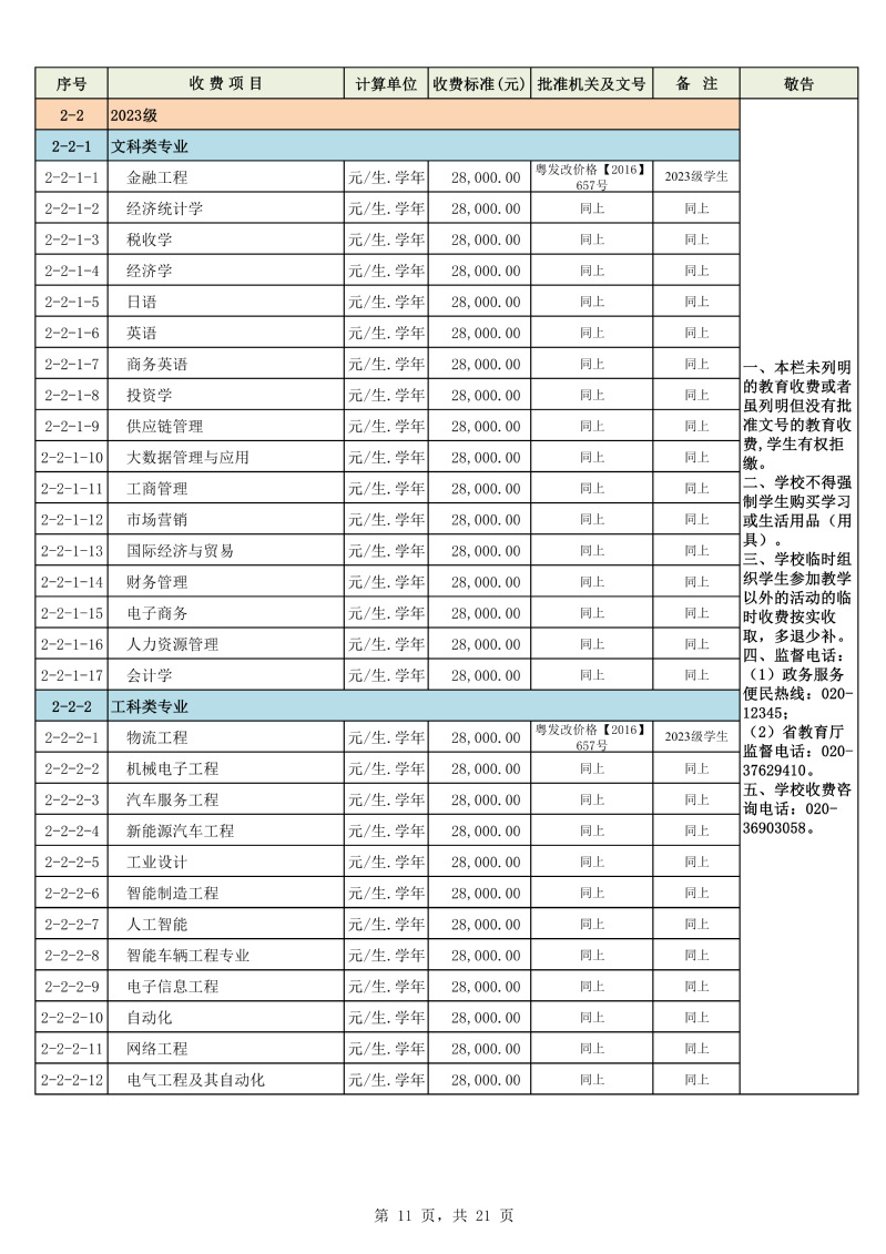 2025学年度广州城市理工学院教育收费公示栏